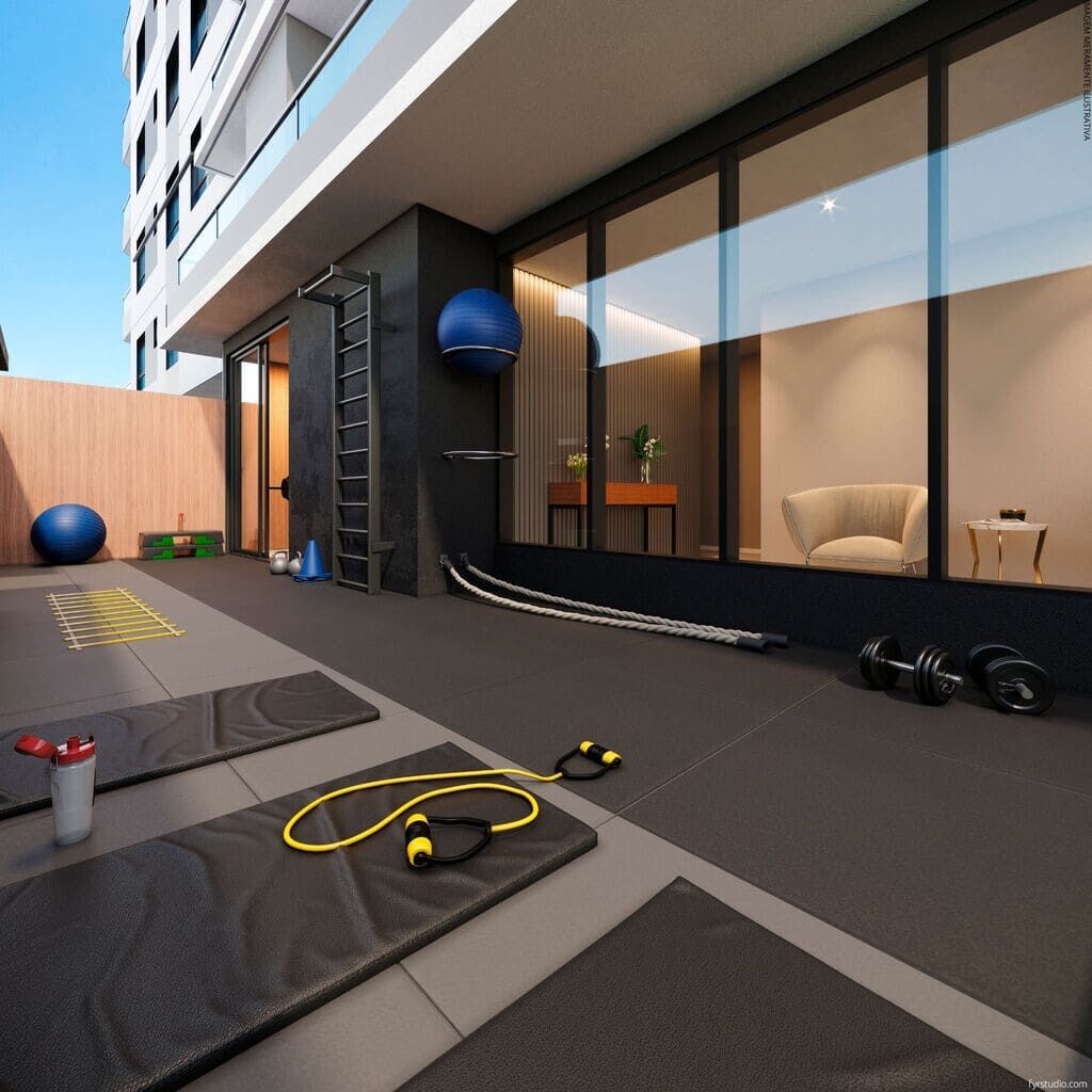 - Área comum climatizada com equipamento de ar-condicionado no salão de festas e academia